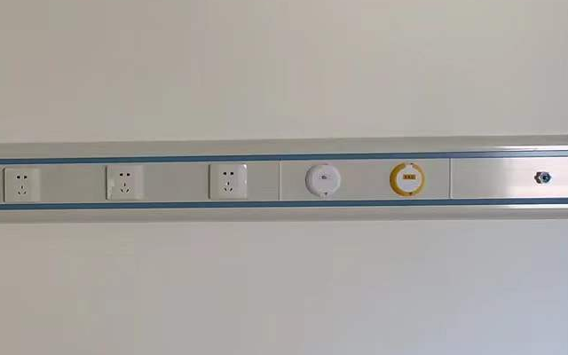 第三步:在墻上固定醫用設備帶、安裝氧氣、負壓吸引等各種氣體終端、呼叫器分機、床頭燈和開關插座等病房床頭設備。