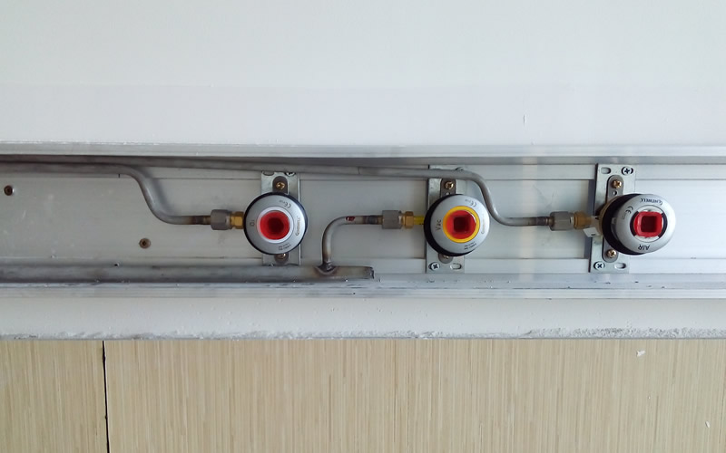 1.我們要根據病房的需要配置病房的氧氣接頭(一般都是根據床位數)。鋁合金設備帶中可以隱藏室內管道中。